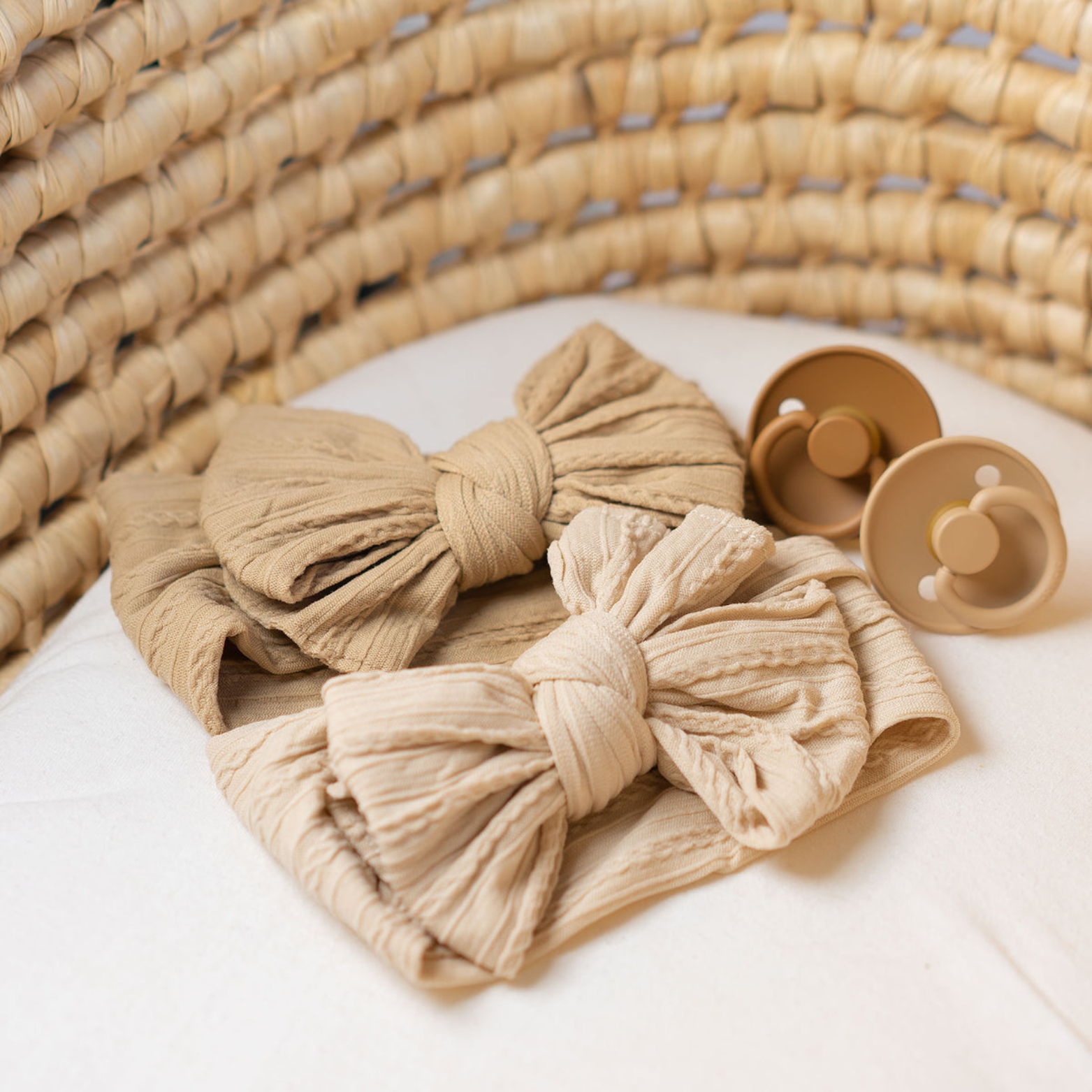 Whether you're looking for a thoughtful baby shower gift or simply want to treat your little one to something special, our cable bow headbands have something for every taste and preference. With a variety of colors, patterns, and styles to choose from, you're sure to find the perfect set to suit any personality!